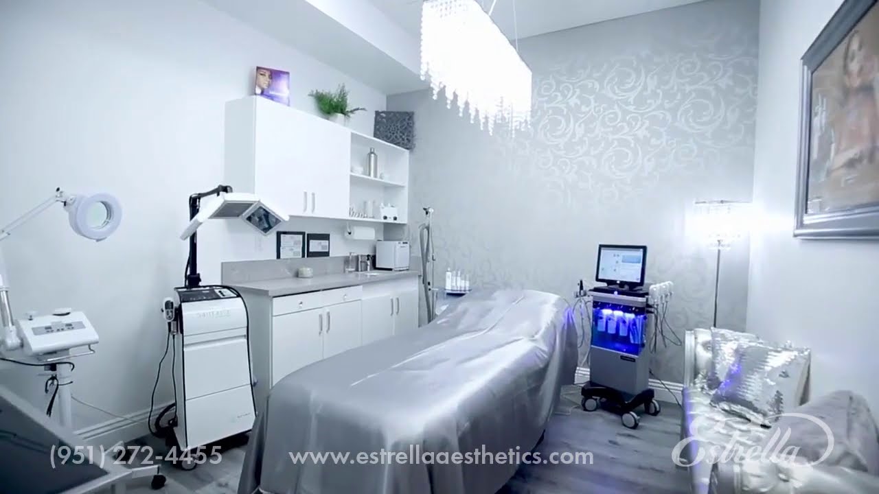 Get to know Estrella Aesthetics: the front building, aerial picture, reception area, waiting room, specialized state-of-the-art treatment rooms, and more!